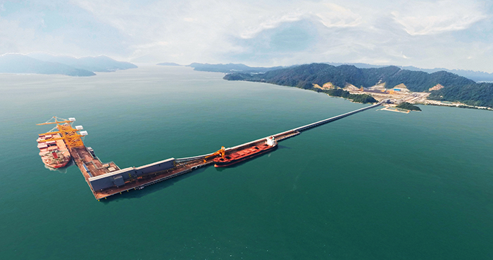 TRMT is strategically located along the Straits of Malacca, one of the world’s busiest shipping channels. The facility is comprised of a deep water wharf and a stockyard with a static capacity of 3.2 million tons of iron ore where different types of iron ore can be customised to the needs of regional steelmakers. The facility has a capacity of 30 million metric tons of iron ore per year for import and export respectively.