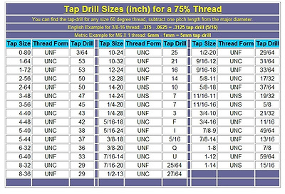 UNC, UNF, UNS 나사를 위한 TAP DRILL 규격표