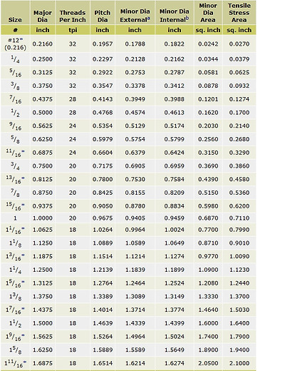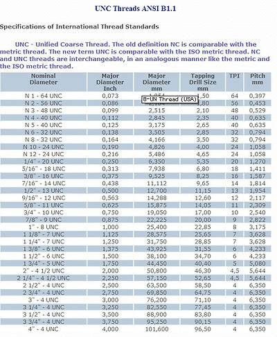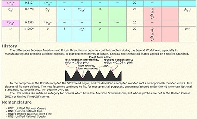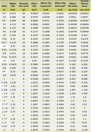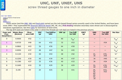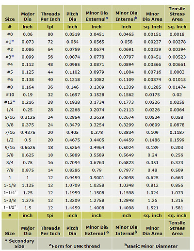 UNC, UNF, UNEF, UNS 나사 규격 비교표