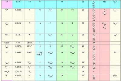 미국 나사(UNC, UNF, UNEF, UNS 등)의 TAP DRILL 치수표