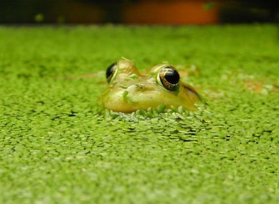 자라는 여러 종류의 물풀들을 자주 볼 수 있는데, 이 개구리