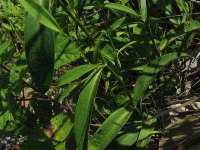 잎은 어긋나고 줄 모양이거나 바소꼴이며 가장자리가 밋밋하고