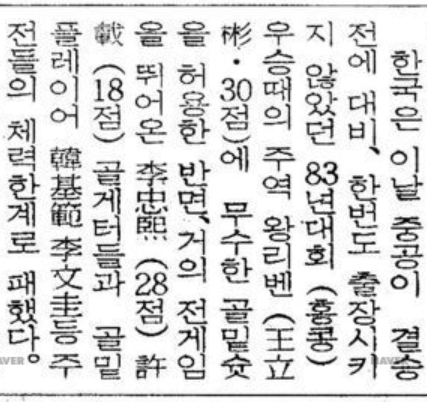왕리빈은 한국과 결승전에서 30득점을 기록합니다.