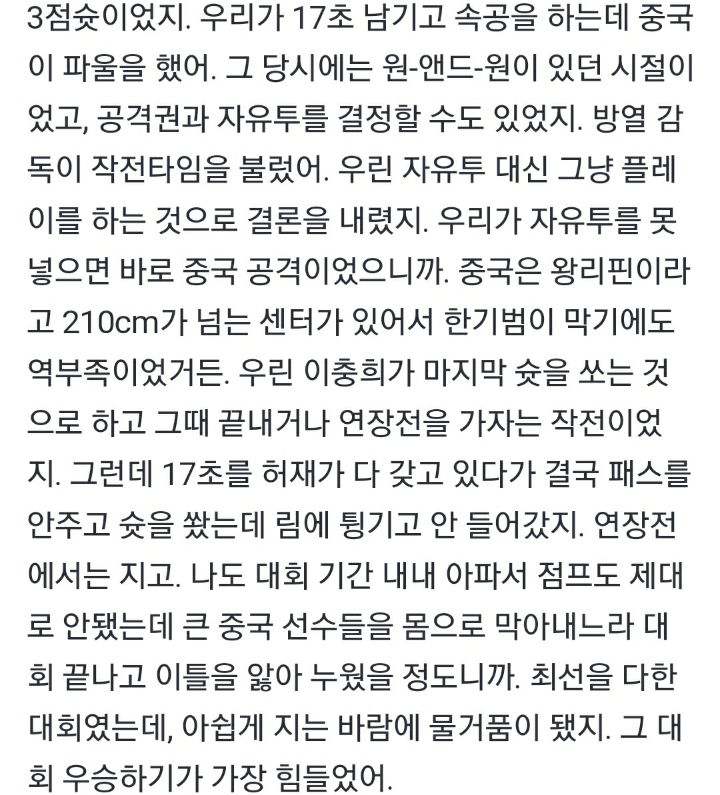 < 종료 5초전 이충희에게 패스 안한 허재 >