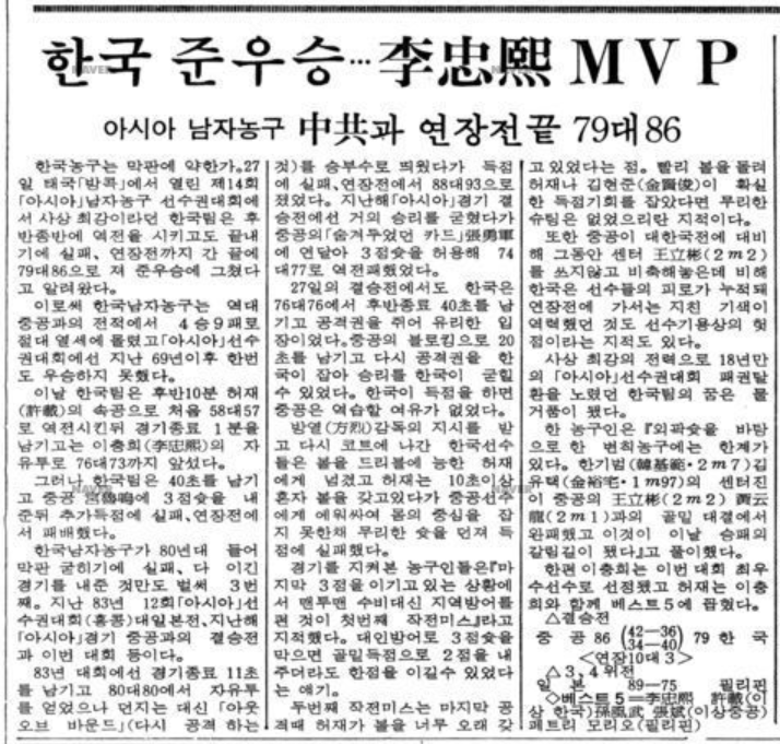 슛감이 가장 좋았던 이충희가 파울을 얻었다면