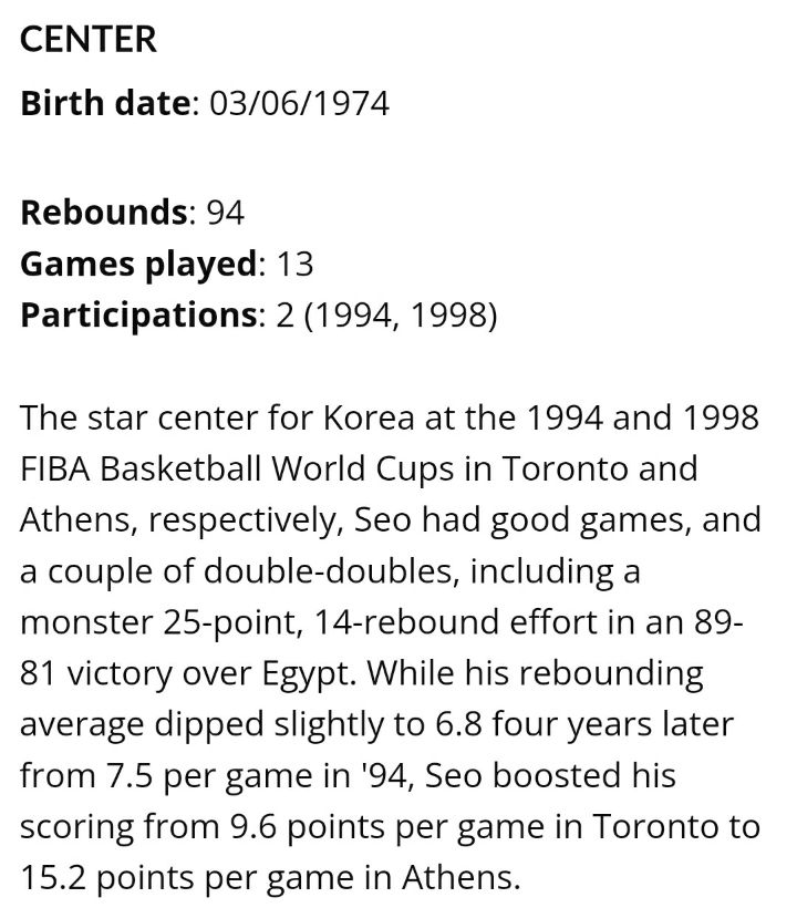 기준 : 국대 롱런 , 우승 , 개인 기록