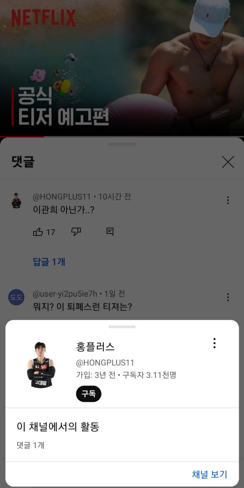 그리고 양홍석이 "이관희 아닌가...?"라고 갑자기 예고편에 댓글을 달았네요 ㅋㅋㅋㅋ 진짜로 궁금해하는건지 뭔가를 알아서 댓글을 단건지 재밌어요 ㅋㅋㅋ
