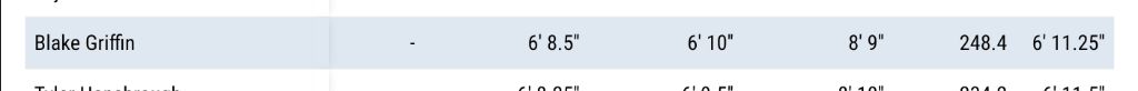 맨발 신장 : 6' 11.5" ( 212.1 cm )