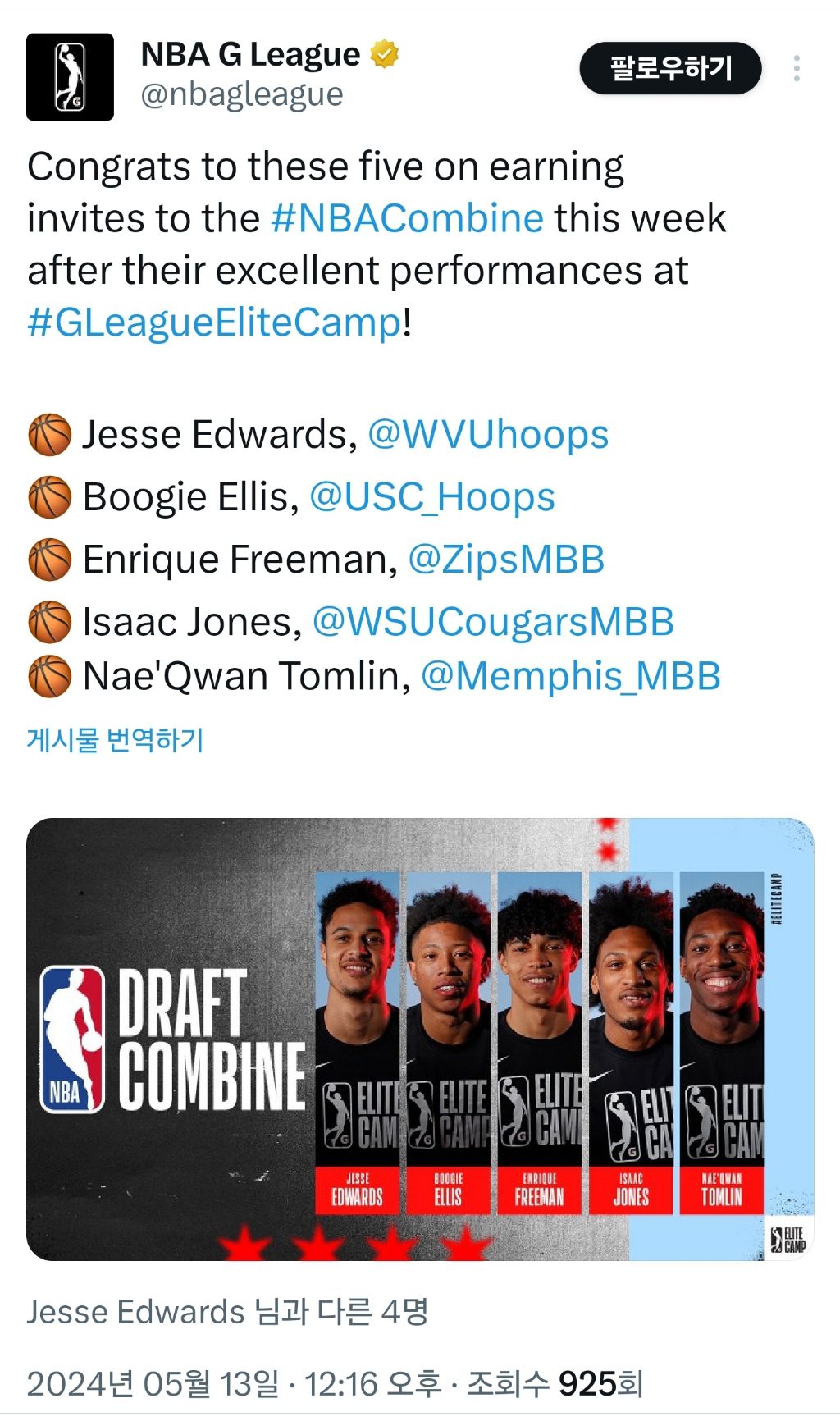 NBA 드래프트 컴바인에 초대된