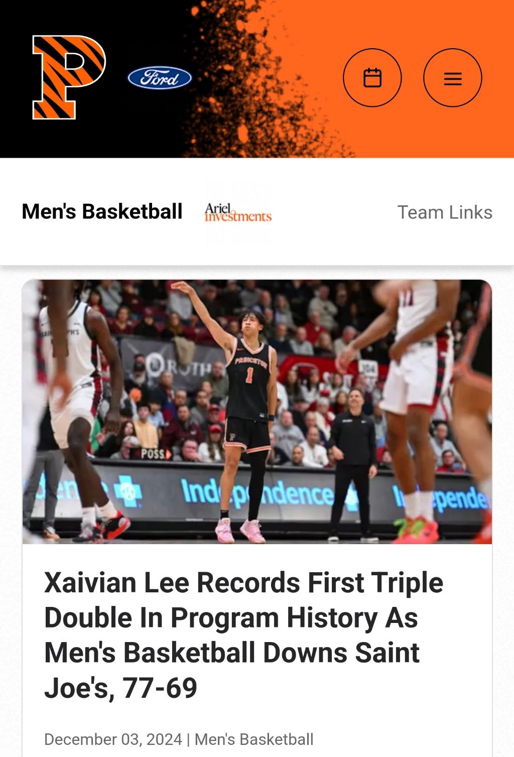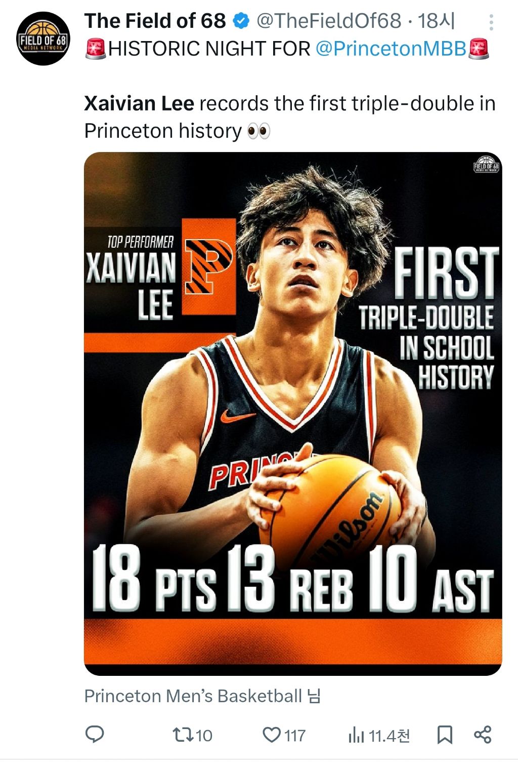 프린스턴 대학 최초 트리플 더블