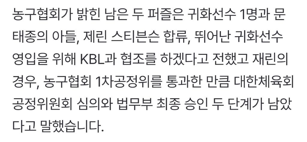 결국 2023년 FIBA 가 로컬 선수로 인정함