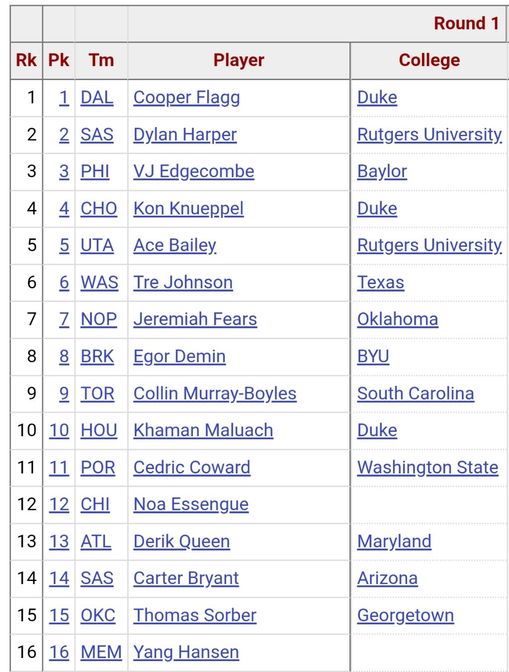 < 양한센 NBA 2025 드래프트 16순위 >