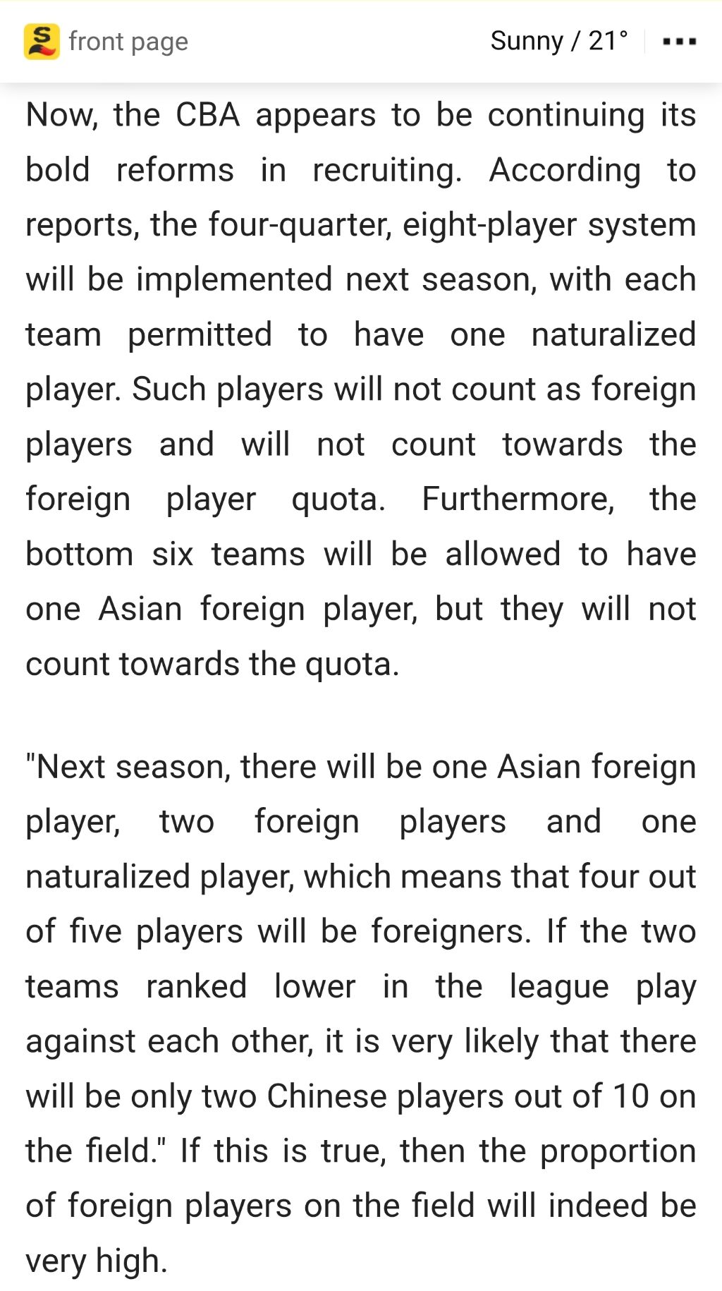 CBA에 귀화 쿼터 도입을 시도하고 있음