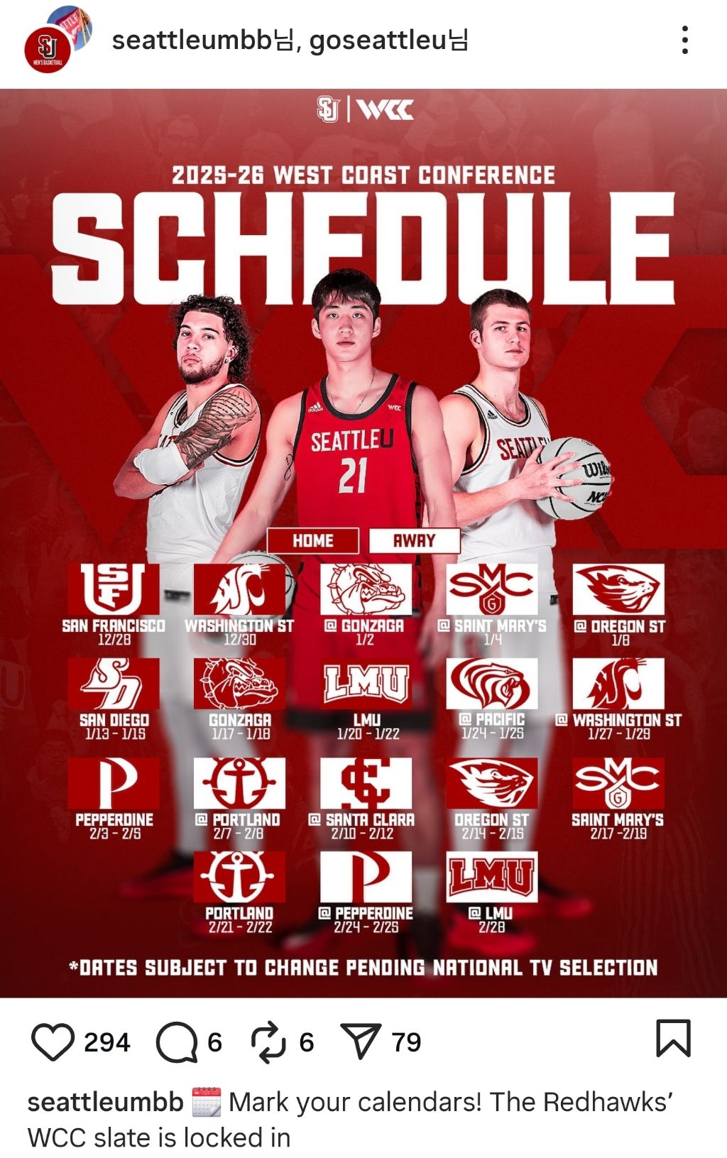 < WCC 컨퍼런스 경기 일정 >