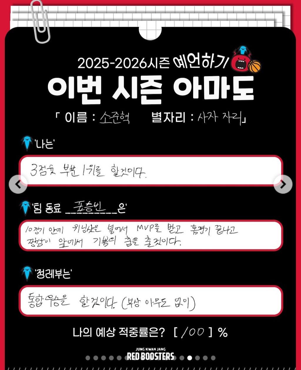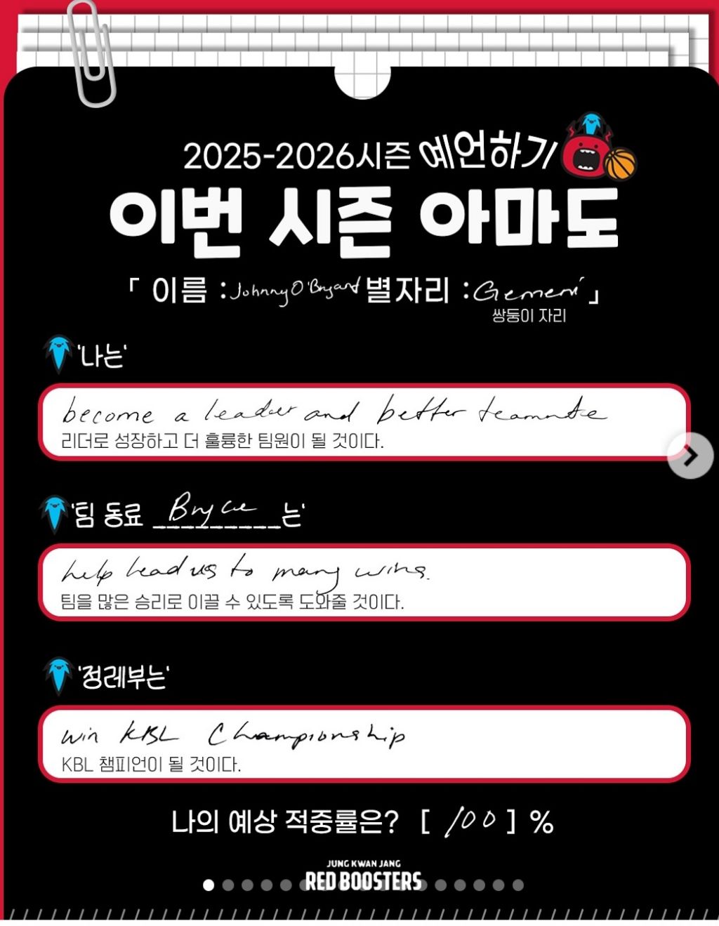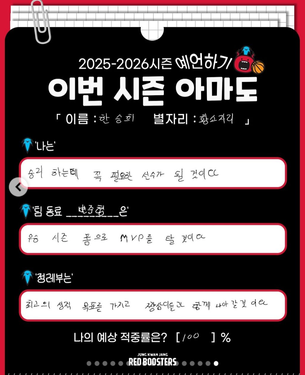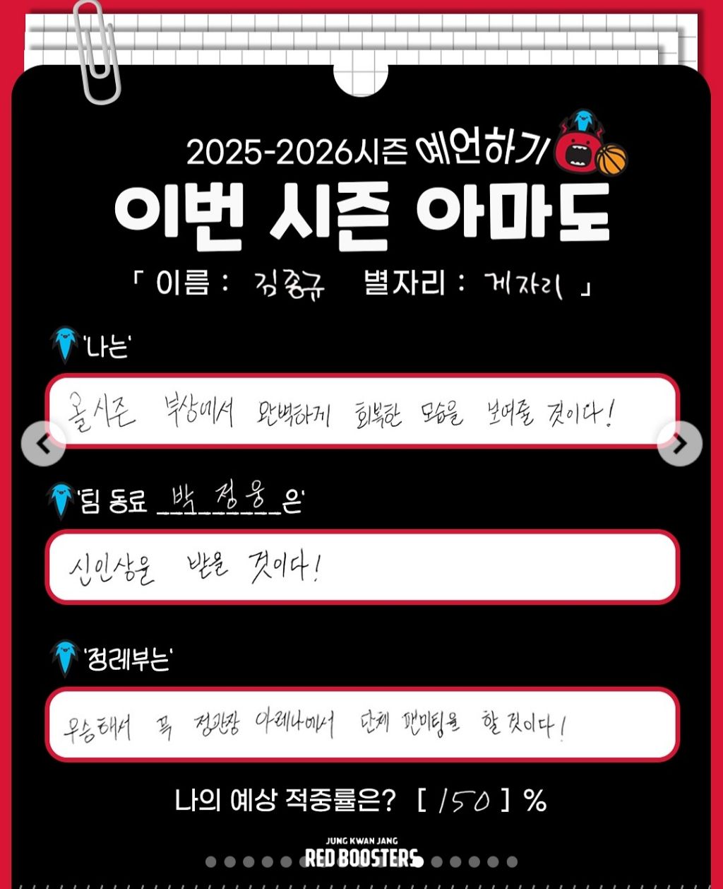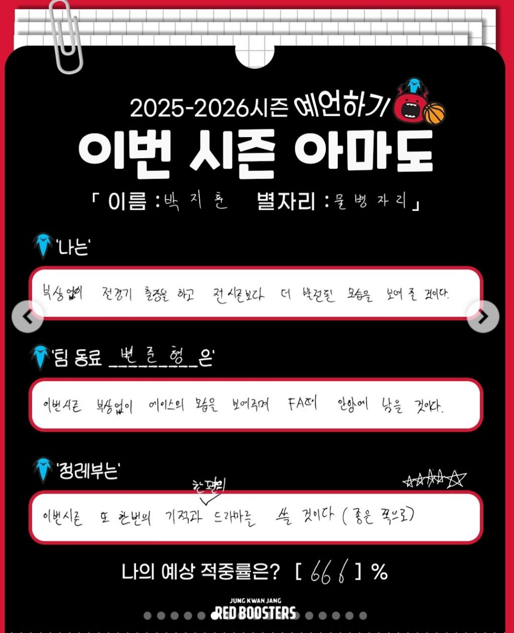 [정관장 insta] "내년에 그는 과연 떠날것인가" 변준형의 잔류를 희망하는 박지훈(그밖에 각자 포부 및 예상)