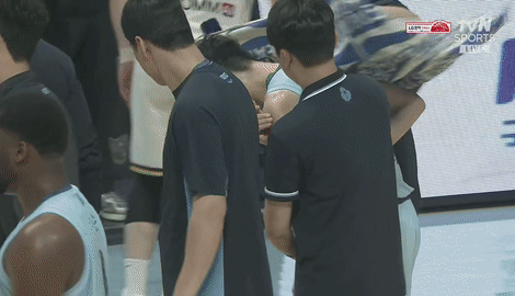 코칭스태프의 부축을 받고 벤치로 물러나는 이재도