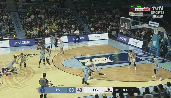 오늘 LG와 경기에서 탑에 있던 제일런 존슨이 골밑으로 파고들던 이재도한테 위쪽으로 패스를 했는데