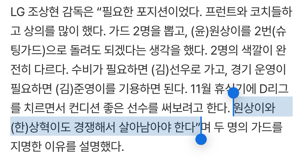 양준석 백업 자리는 맡아놨구나 생각했는데