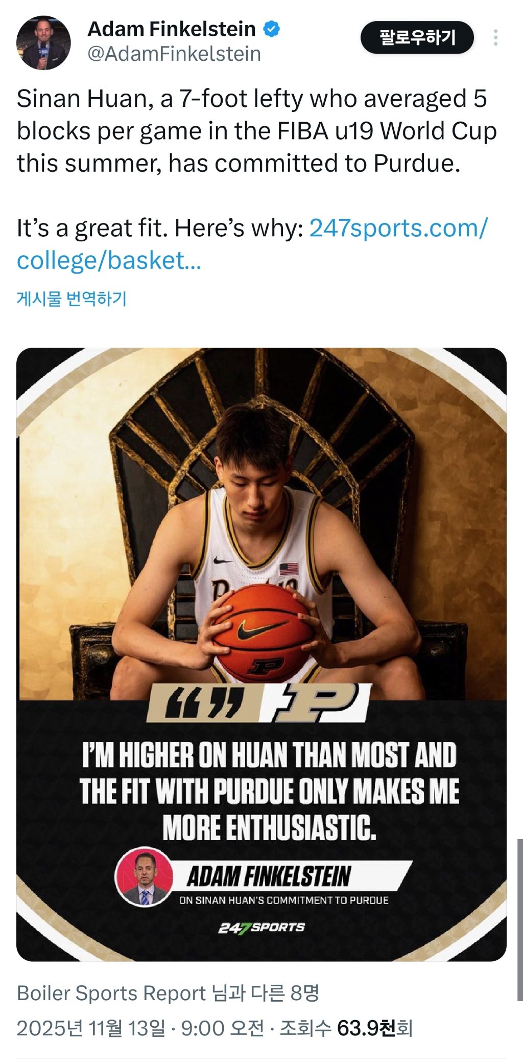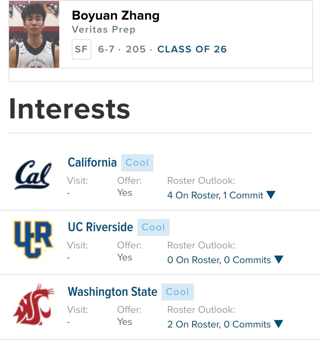 슛이 좋은 Boyuan Zhang NCAA 입학 예정