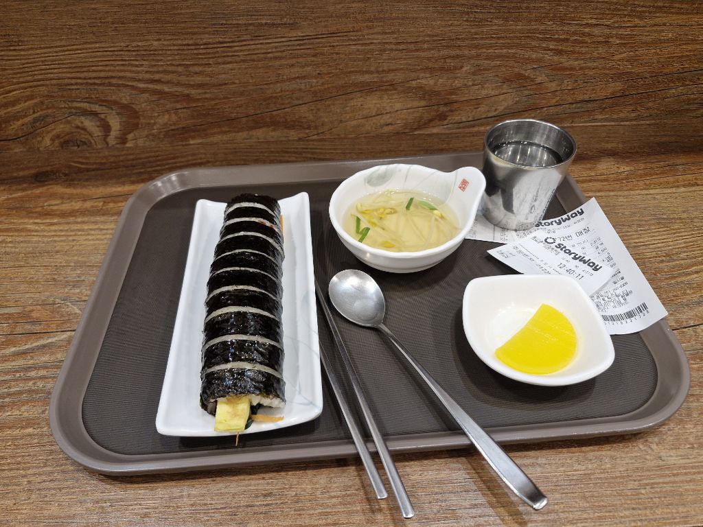 열차출발 1시간 전 울산역에 있는 분식집에서 김밥 한줄로 간단히 때웠다. 그 후 13시40분 KTX를 타고 기나긴 여행을 마쳤다.