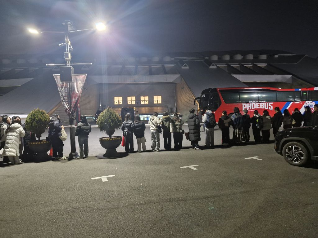 홈팀버스와 원정팀버스가 붙어있고 안전띠도 널찍히 둘러싸있어서 홈팬,원정팬 구분이 없었다. 대부분 현대모비스팬들이었지만 정관장 선수들 모두 성심성의껏 팬서비스를 해주었다.