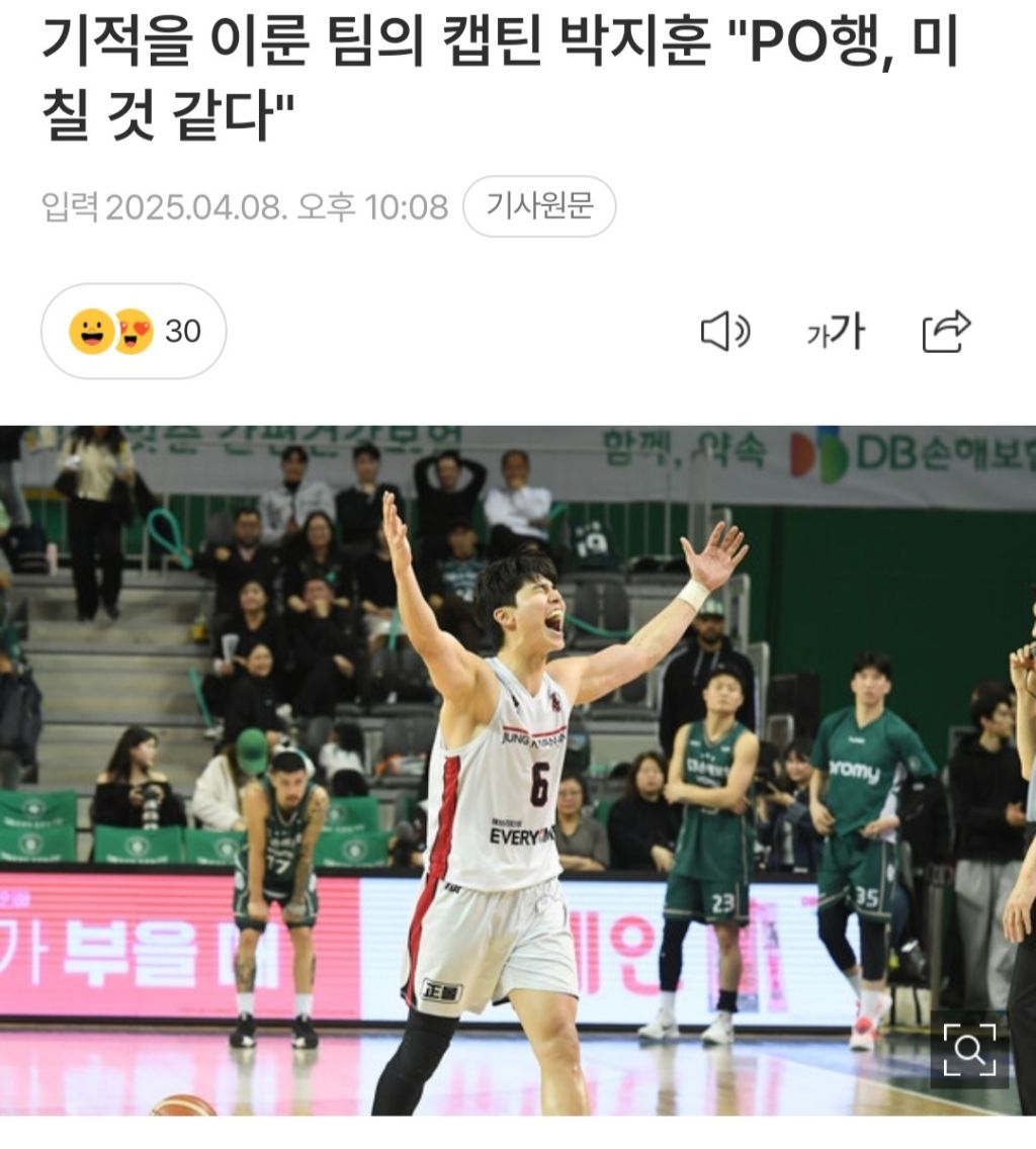 경기 후 박지훈은 "DB의 홈이어서 팬들의 응원 소리가 장난이 아니었다. 선수들도 긴장을 많이 했던 상태였는데, 잘했다고 생각한다. 일단 플레이오프를 갔다는 것 만으로도 지금 너무 미칠 것 같다"라며 플레이오프행 소감을 전했다.