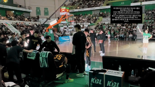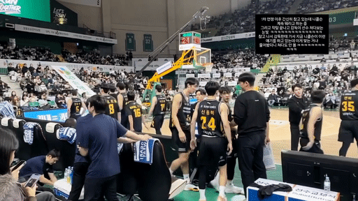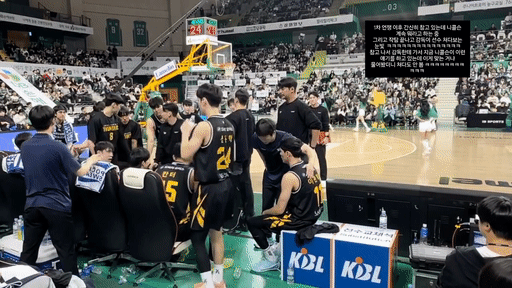 영상 마지막쯤에 보시면 글처럼 작전타임에 움직이는 선수가 이관희인가보네요