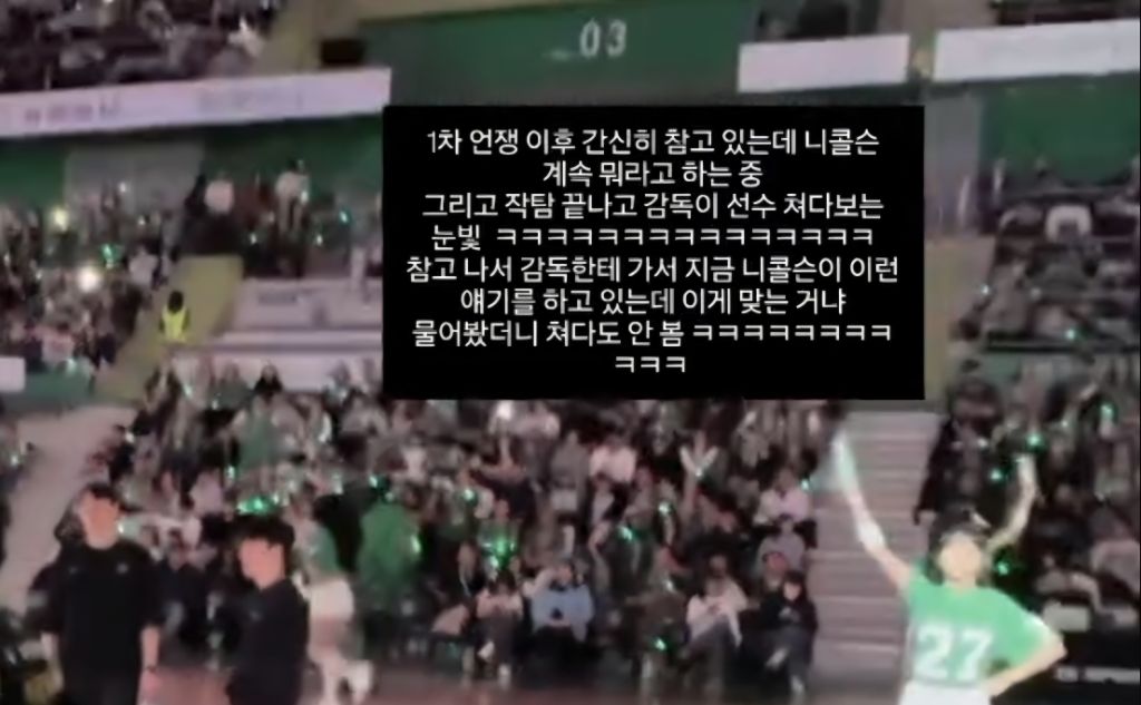 싸운이유는 정확히 안 밝혀졌지만 사람들은 니콜슨이 경기 후반으로만 가면 수비와 리바운드 참여가 저조해서 이관희가 화났다고 추측하고 있네요