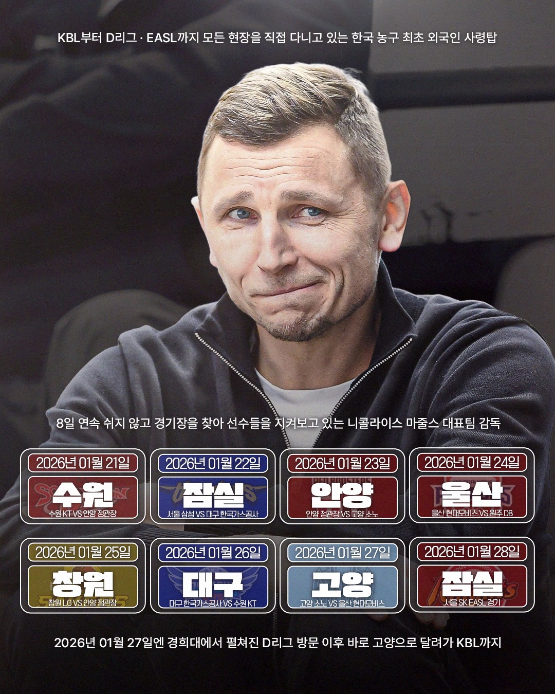 우리나라 선수들에 대한 정보가 많이 없을텐데 수도권 지방에 관계없이, KBL 이외에도 D리그와 EASL까지 우리나라 농구에 대한 이해를 높이려는 노력과 열정이 보기 좋네요