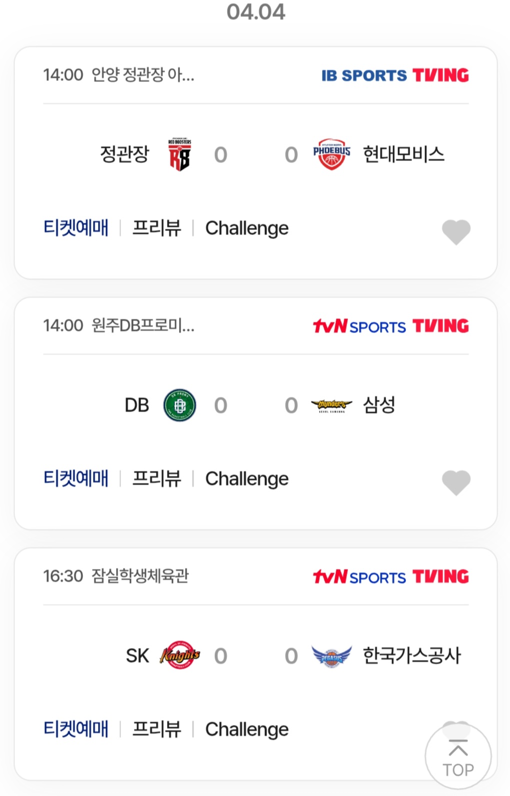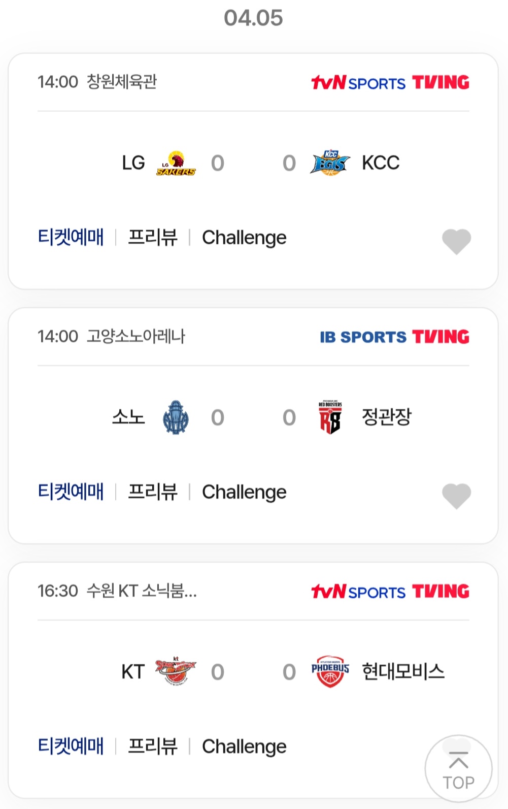 - 14:00 소노 vs 정관장 //
