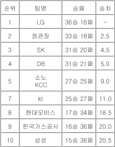 이에 따라서 KT가 5위, KCC가 6위, 소노가 7위가 된다.