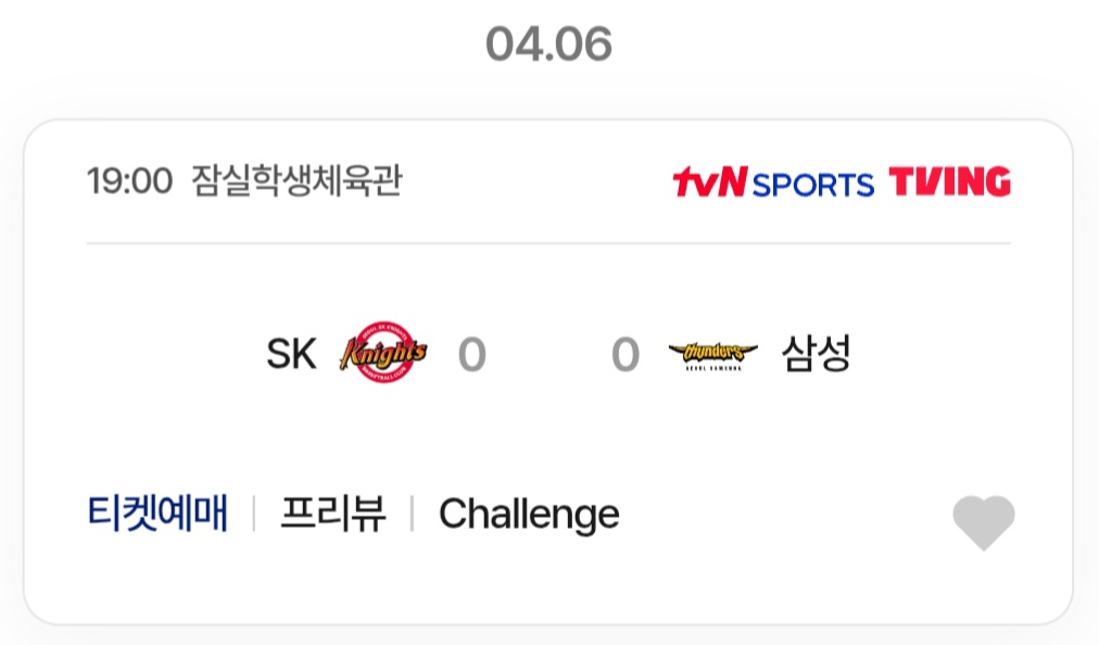 - 19:00 SK vs 삼성 //