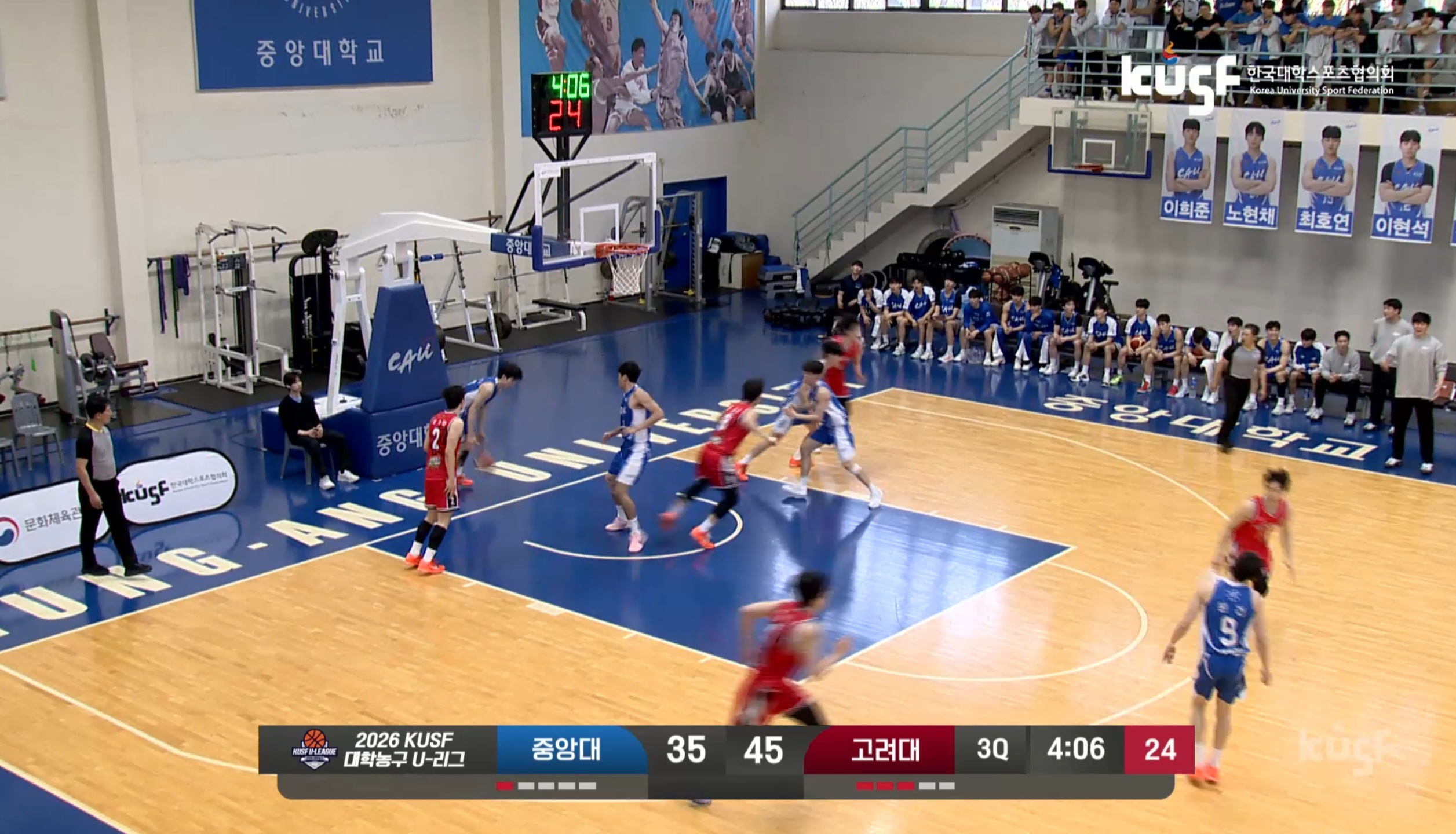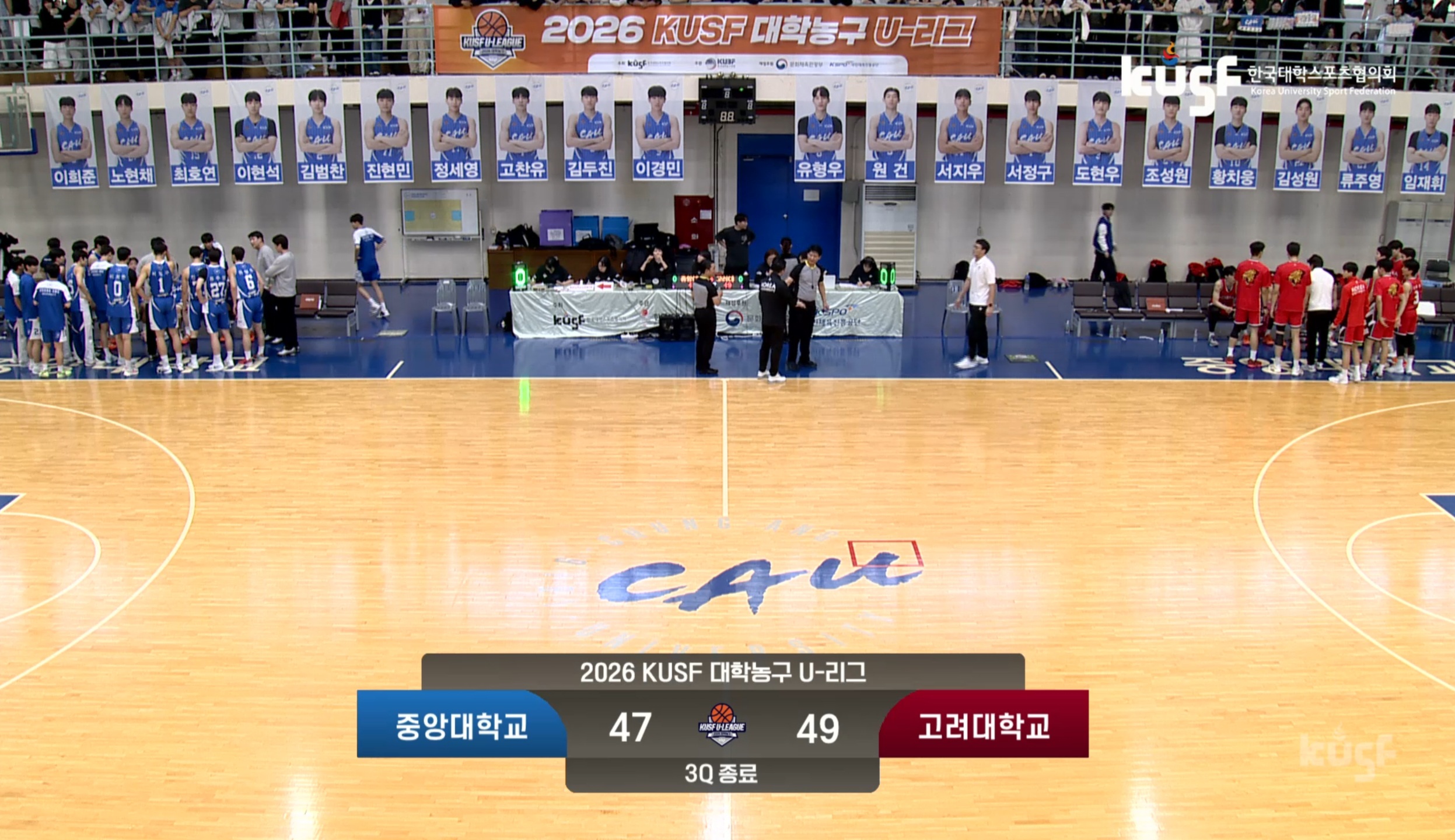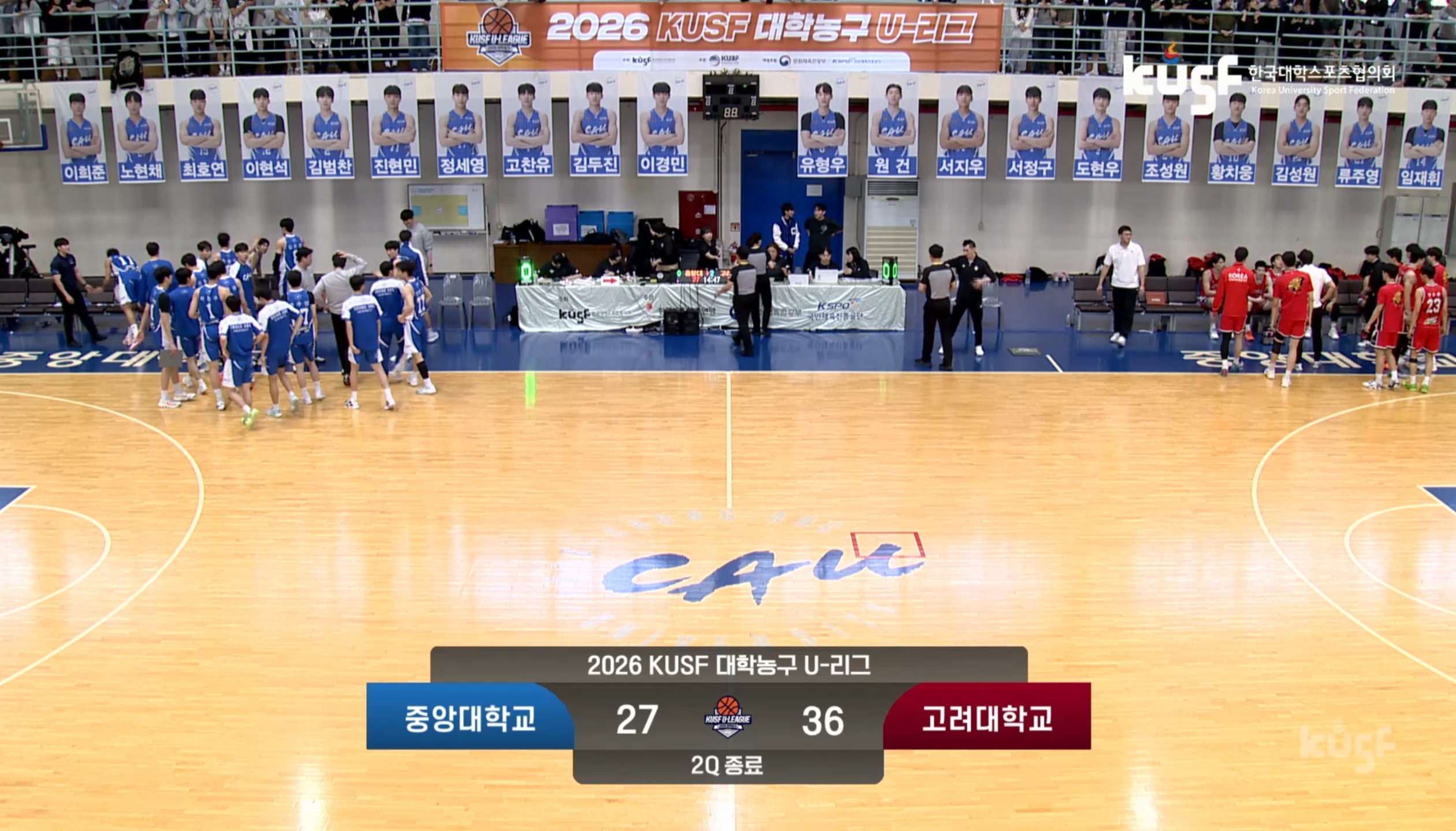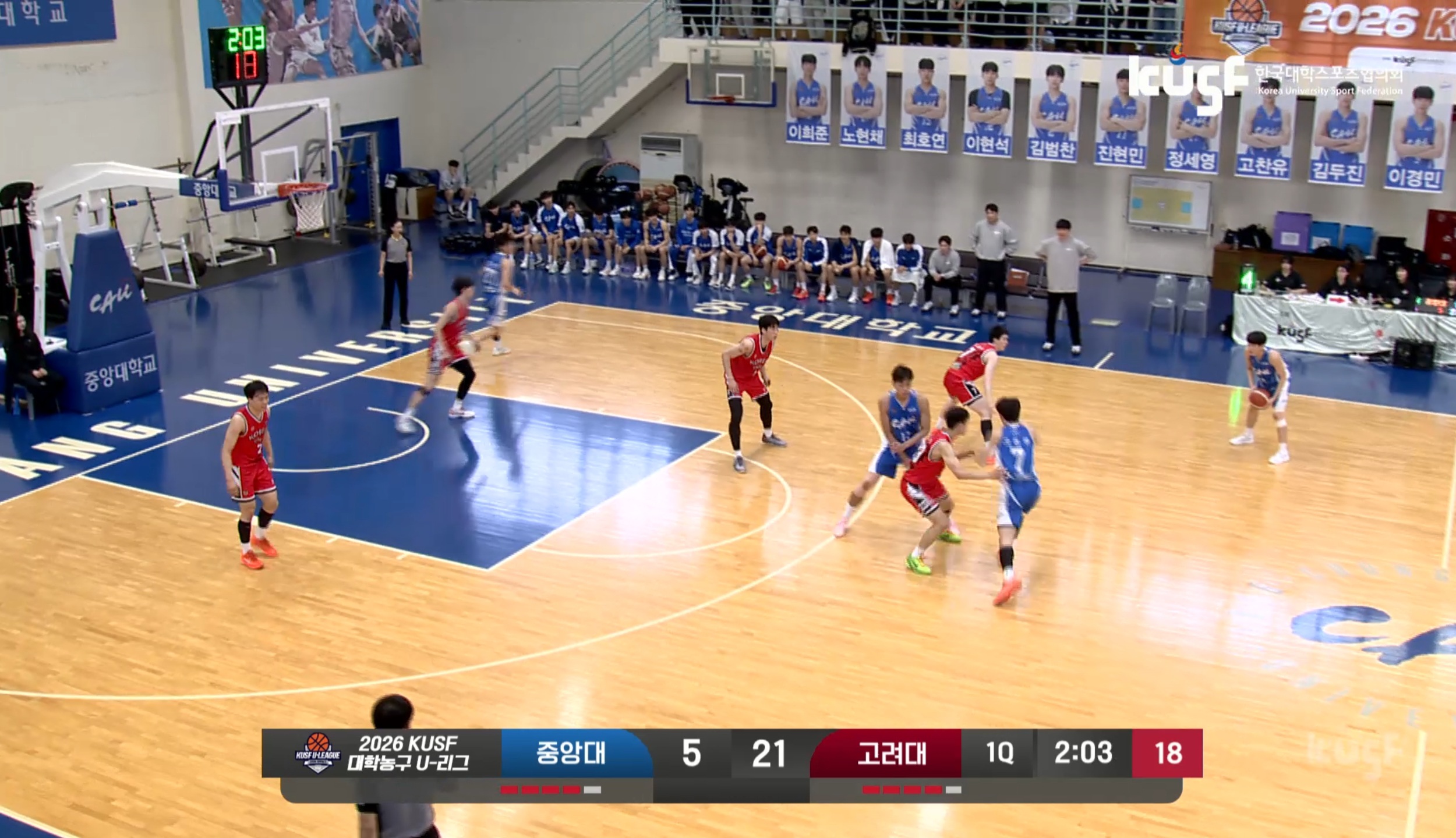 개막전에서부터 성균관대에 패했던 고려대가 중앙대에게도 지면서 5경기 만에 2패째를 떠안았네요