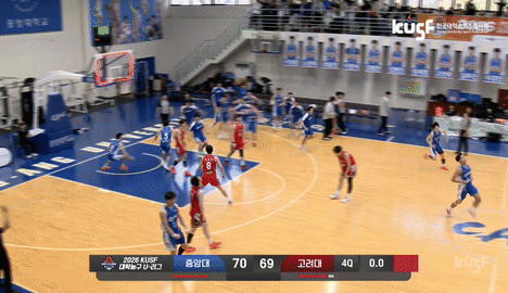 중앙대는 고려대의 마지막 공격에서 서지우가 심주언의 돌파를 블록으로 막아내고