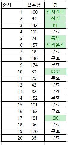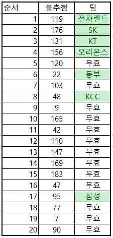 앞에서 무효표가 계속 나오게 되면 후순위 팀 가슴 진짜 더 쓰릴듯 합니다 ㅋㅋㅋ