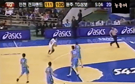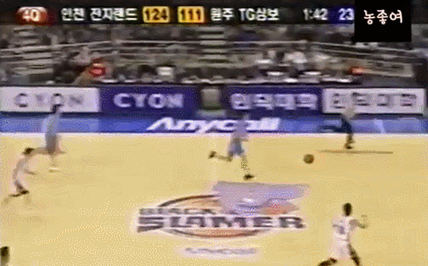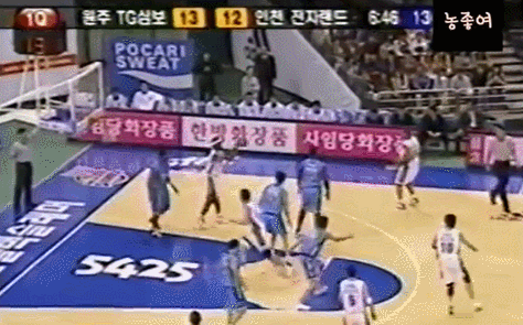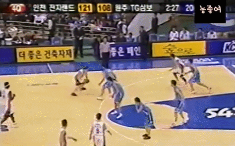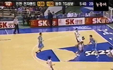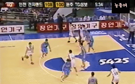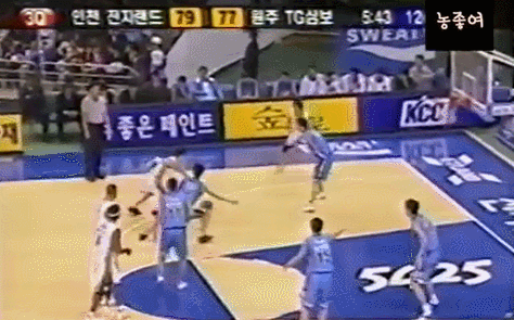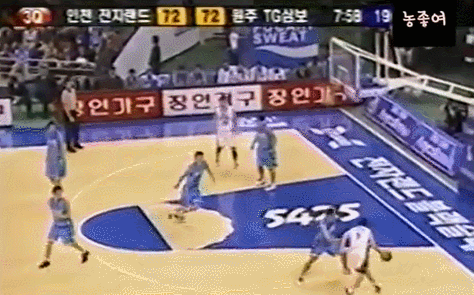 왼손으로 훅슛을 시도하는게 보통인데.. 갑자기 손바꿔 오른손 슛이라.. 그것도 딱 김주성 앞에서