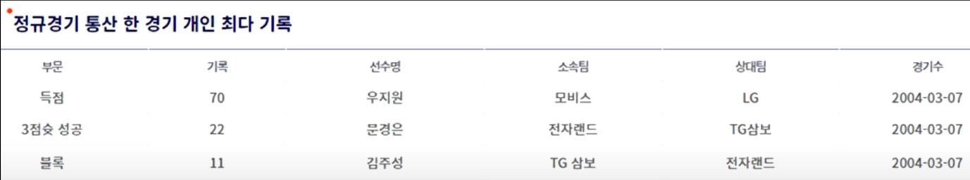 한경기 3점슛 최다기록 22개 문경은