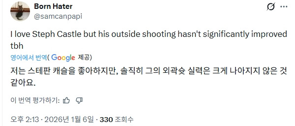 - 그리고 같이 달린 답글처럼 캐슬의 미드레인지 점프슛이 발전한 것도 사실입니다.