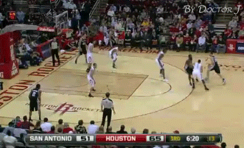 컷인 돌파를 성공시키자마자 백코트해 케빈 마틴의 골밑 슛을 블락해버리는 장면입니다.