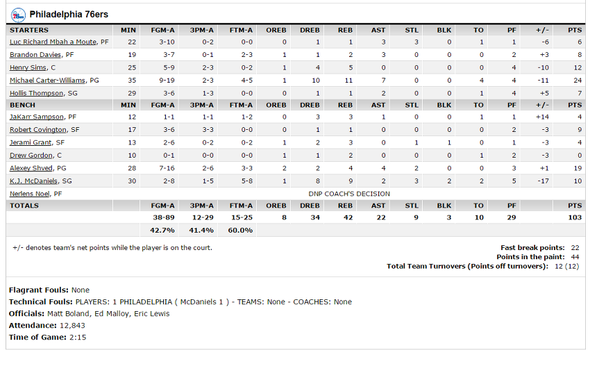 애런 베인스(29분) : 15점(6-9), 9리바운드, 1스틸