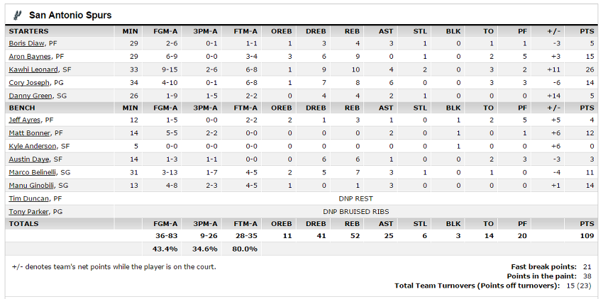 던컨과 파커의 결장으로 레너드가 1옵션으로 뛴 것 같네요.
