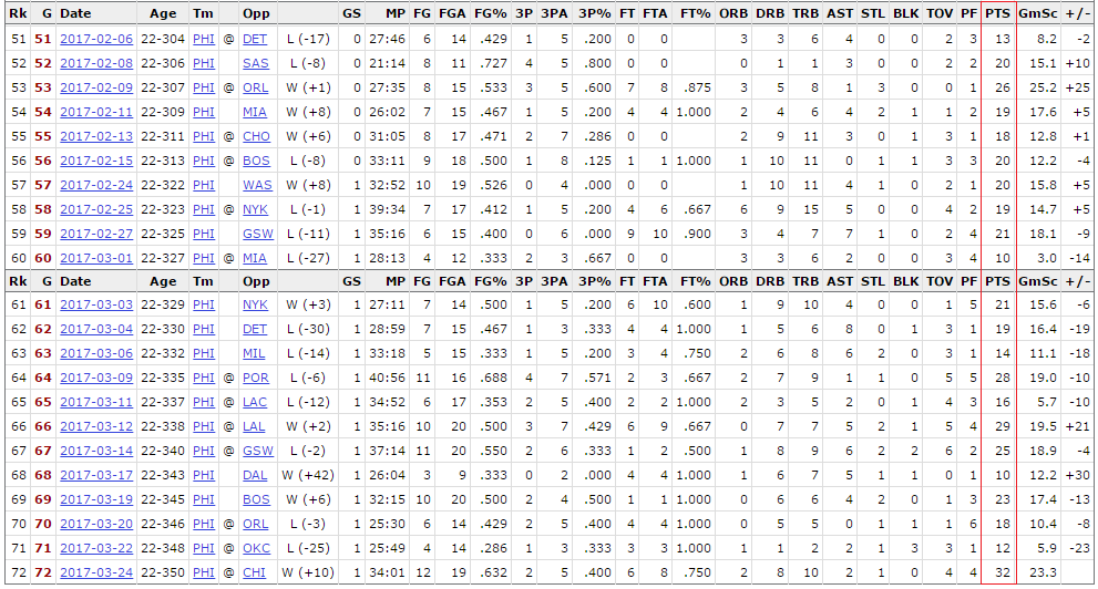 22경기를 추린 이유는, 바로 22경기 연속 두자리 수 득점에 성공하고 있기 때문입니다.