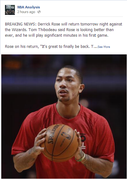 페이스북갔는데 눈에띄는 로즈의 워싱턴게임 복귀소식.... 정말 기쁘고 들뜬마음으로 더보기를 누르려는 찰나...
