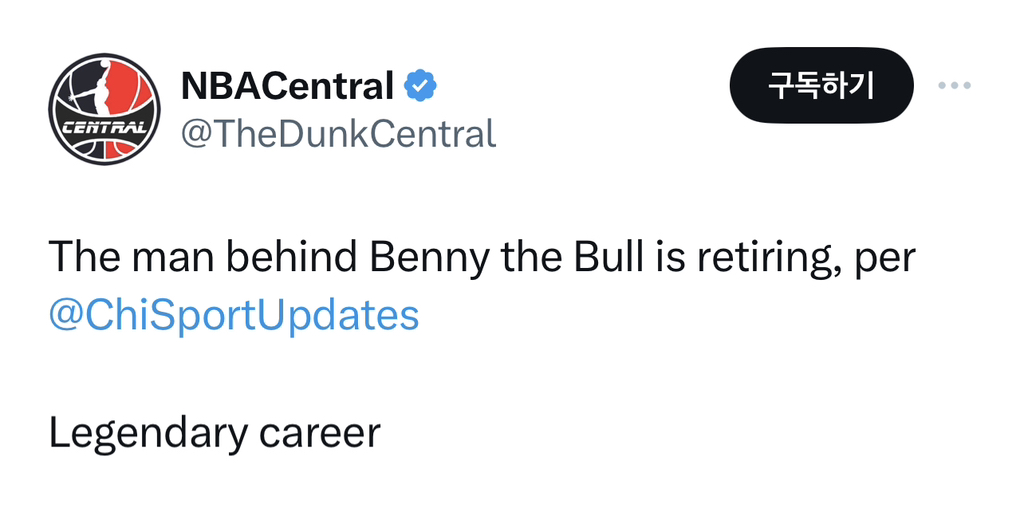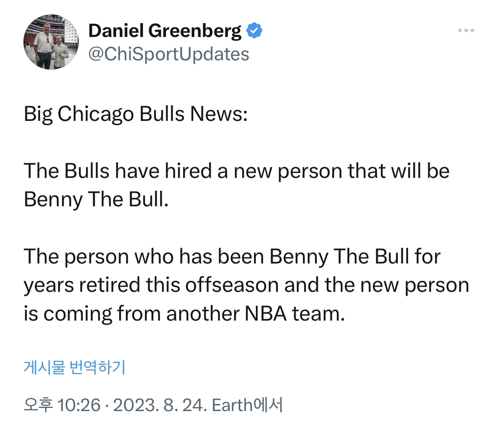 이번 오프시즌 은퇴하는 불스 마스코트 ‘베니 더 불’의 연기자 작성자(CHI)불타는개고기|작성시간23.08.24|조회수969 목록 댓글 0 글자크기 작게가 글자크기 크게가 기존에 ‘베니 더 불’을 연기하신 분은 은퇴하시고다른 구단에서 새로 영입한다고 합니다 다음검색 현재 게시글 추가 기능 열기 북마크 신고 센터로 신고 댓글 댓글 0 댓글쓰기 답글쓰기 댓글 리스트
