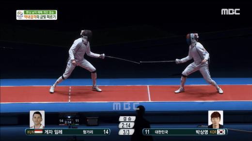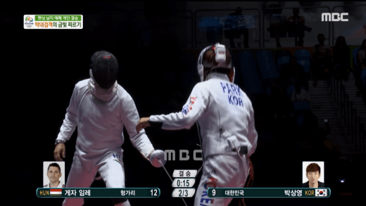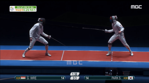 당시 21세, 대표팀 막내였던 박상영은 42세의 베테랑 게자 임레를 결승에서 만나