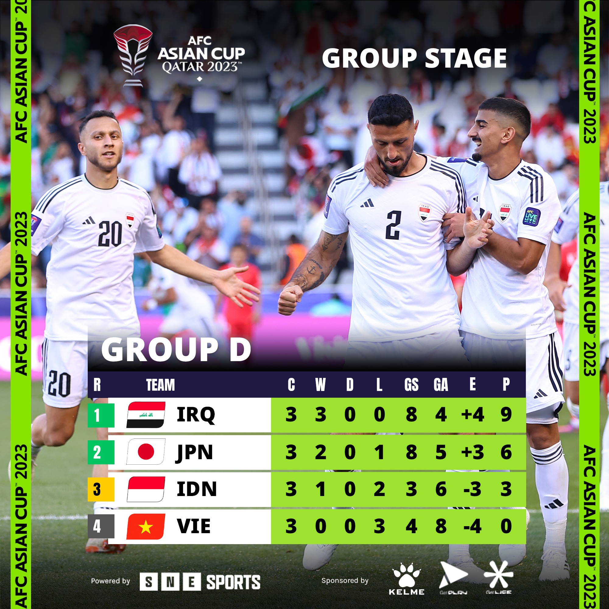 [스크랩] 2023 아시안컵 조별리그 D조 최종 순위 작성자Jason-Kidd|작성시간24.01.25|조회수1,263 목록 댓글 1 글자크기 작게가 글자크기 크게가 조 1위 이라크, 조 2위 일본 16강 진출 확정 다음검색 스크랩 원문 : 이종격투기 현재 게시글 추가 기능 열기 북마크 공유하기 신고 센터로 신고 댓글 댓글 1 댓글쓰기 답글쓰기 댓글 리스트 작성자신인드래프트 | 작성시간 24.01.25 대한민국도 오늘 말레이시아전 승패 상관없이 16강 확정이요! 댓글 전체보기