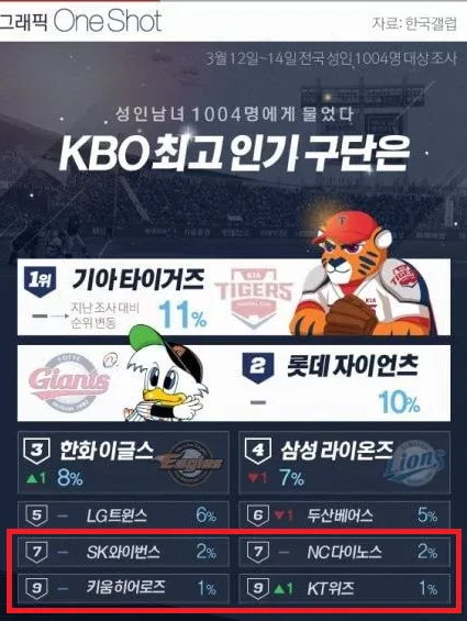 해당 팀들의 인기 부진 사유를 꼽자면