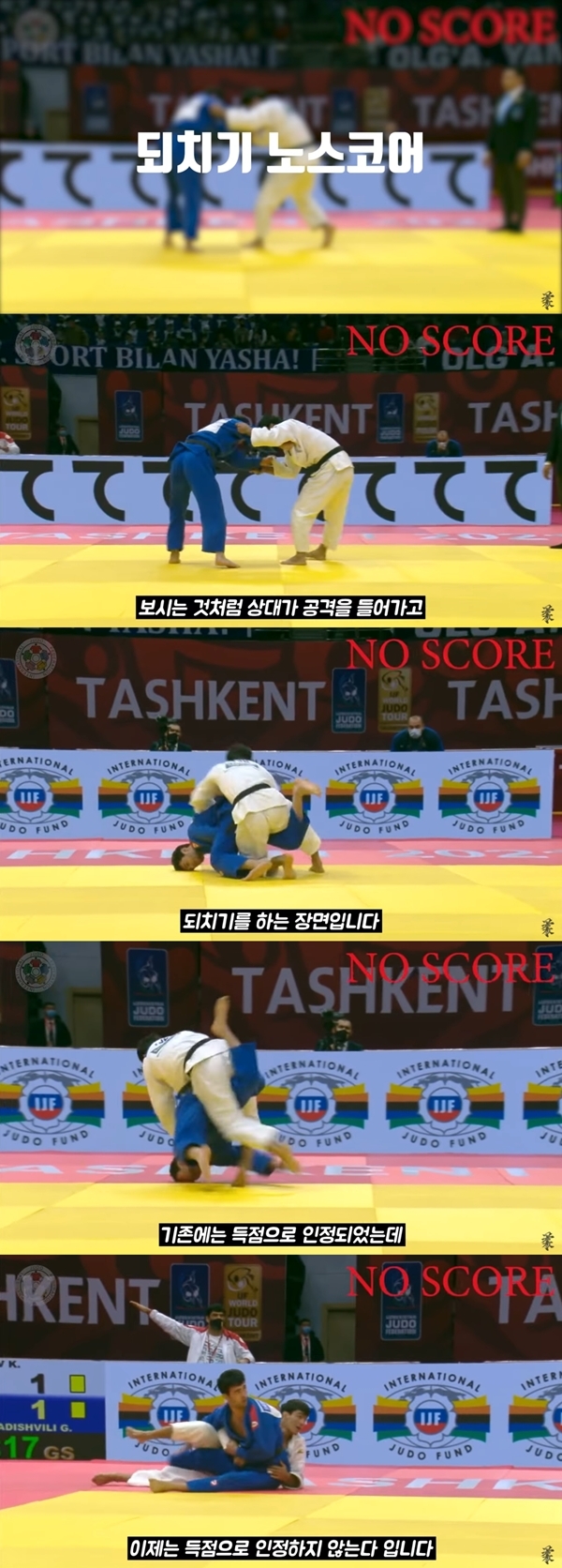 3. 상대방 공격(기술) 중에 그냥 붙잡고 되치기할 경우 '무득점 (No Score)'