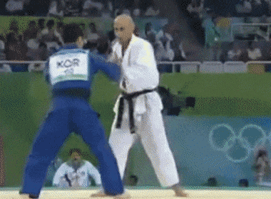 최민호 베이징 올림픽에서 이란의 마수드 아콘드자데(아시아 선수권 1위)에게 한판을 따냈던 말아업어치기