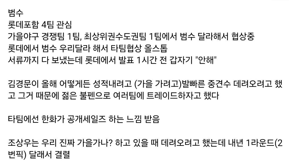 나왔던 썰에 의하면 트레이드 될뻔한 선수들은